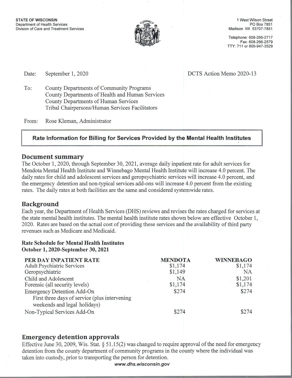 These are the Billing rates for Waukesha County Mental Health Center Located at 1501 Airport Rd. Waukesha WI.